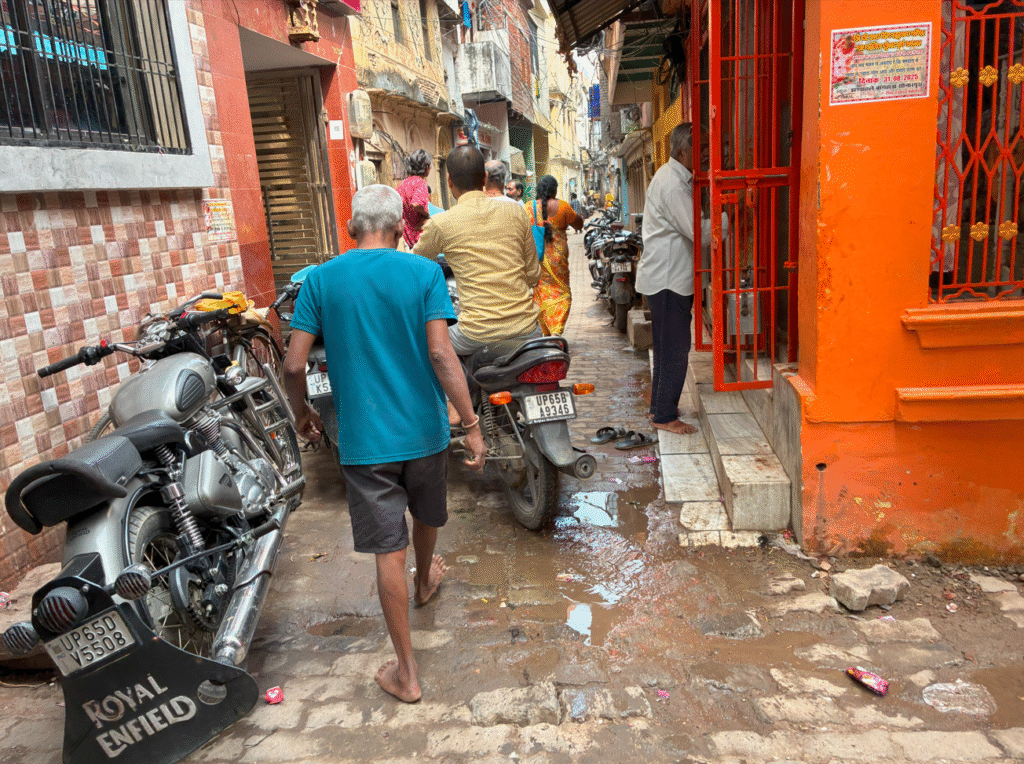 こんな細い道にも平気で歩行者を押しのけてバイクが走ってきます。インドの皆さんは慣れているっぽいですが、未だに近くでクラクションを鳴らされるとビクッとします。