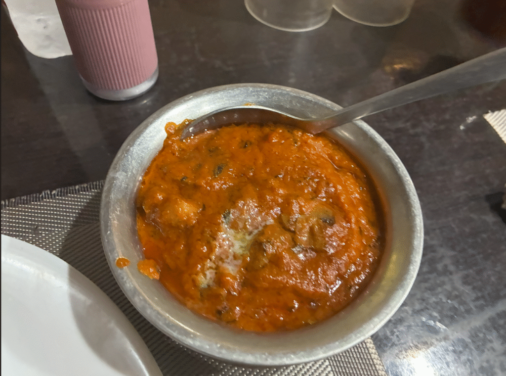 Googleマップのクチコミで美味しかったの声が多かったマッシュルームバターマサラを注文。マジで美味い。辛いのは辛いが美味しい辛さ(?)で、良き。インドカレー食べてるって感じが最高でした。