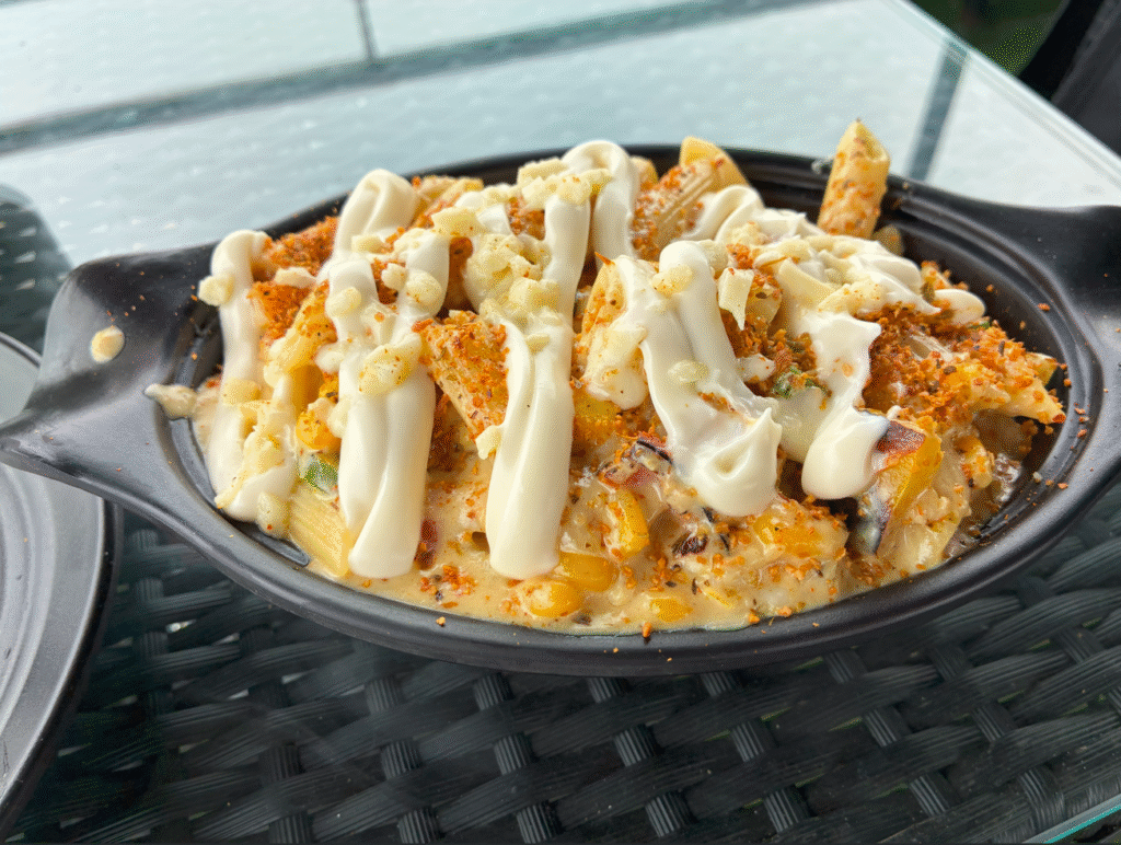 ガンジス川を見下ろしながらホワイトソースパスタ。インドのパスタはペンネ。ここでも日本語を話せるスタッフがいて話しかけてきます。日本語が上手で色々聞くと10年ほど前、大阪で働いてた経験があるそうです。本名はジョイさん。楽って言う意味から日本では楽太郎(らくたろう)って呼ばれてたそうです。ジョイ=楽って意味もあるのか。
