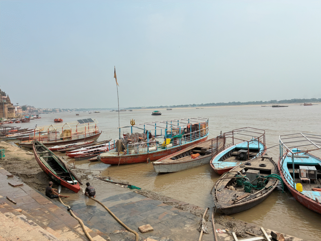ガート間をガンジス川に沿って歩いてみます。まっ茶色の川ですね。。。