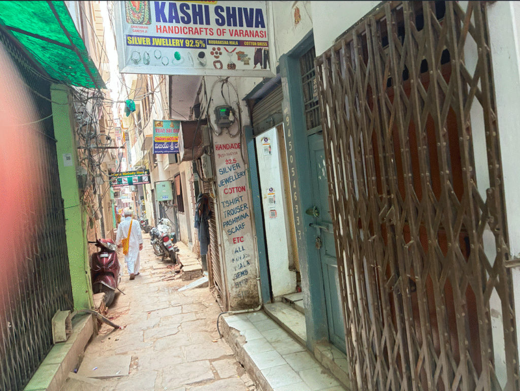 色々とカタコト英語で会話して面白いオッサンでしたが、最終的にはオッサンの家兼ラグジュアリーや衣類などのお店(写真看板のKASHI SHIVA)へ連れていかれて色々とセールスされました。頑張って売り込まれても荷物を増やせないバックパッカーなので、丁重にお断りして退散です。