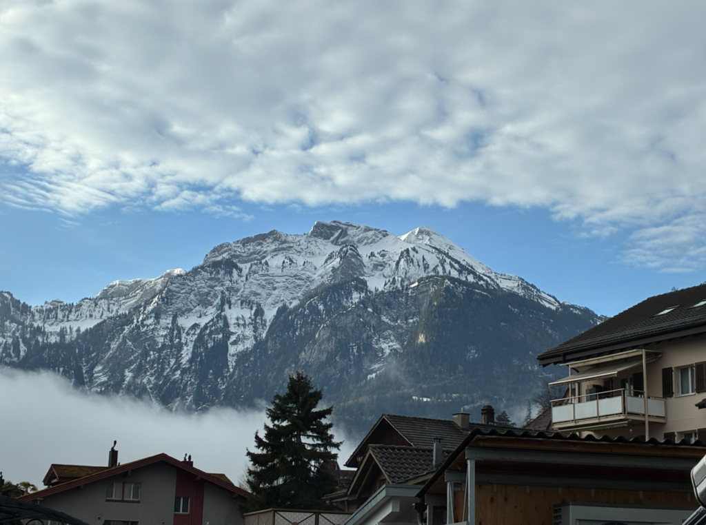 今日の列車旅は9:30スイスのインターラーケン駅を出発して、4度乗り換え、待ち時間もありヴェネツィア到着予定が19:50。終日電車移動の日。窓際の席を陣取って絶景を楽しみます。