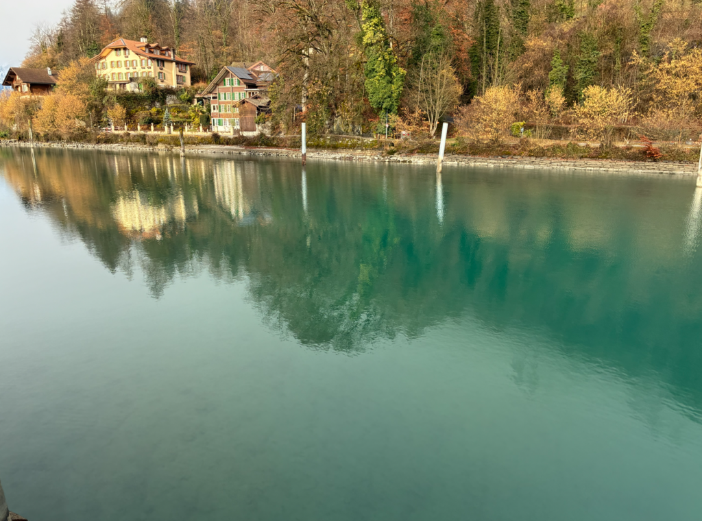 毎日眺めて写真撮影している“水の回廊”アーレ川(Aare River) 。エメラルドグリーンの川も今日が最後。