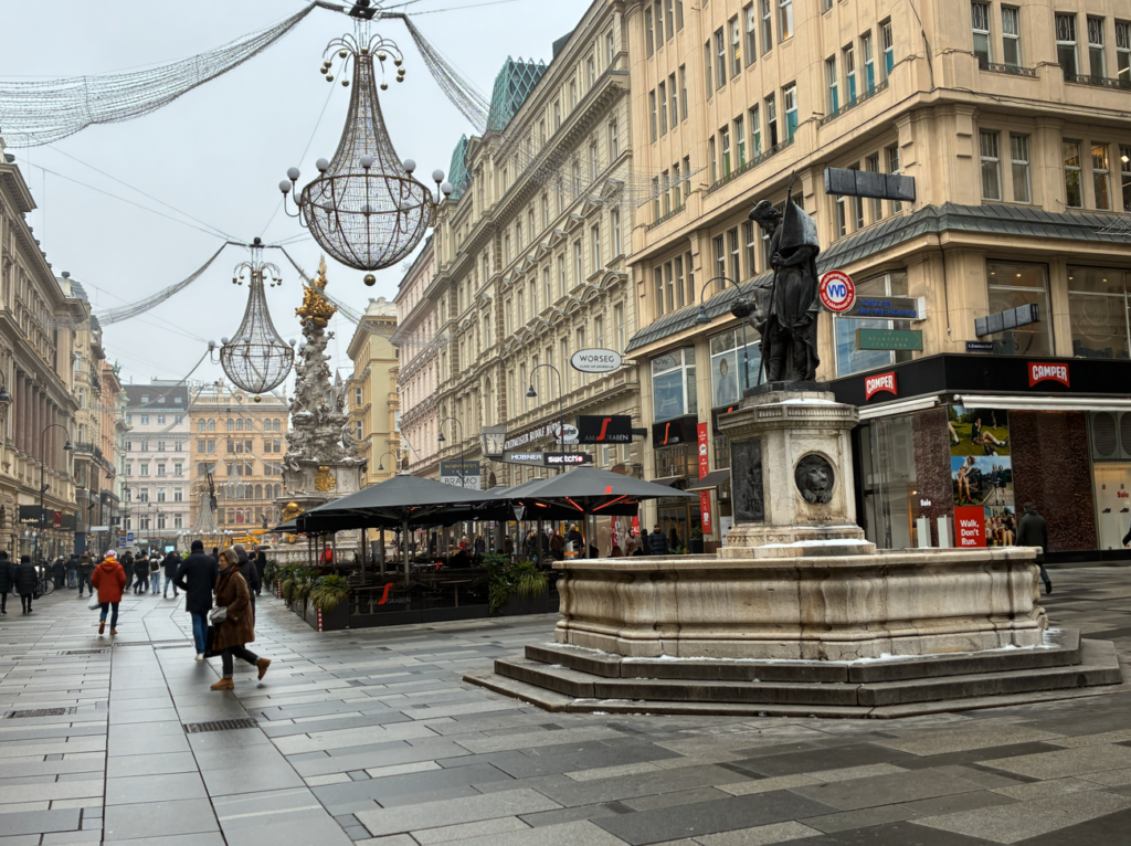 シュテファン大聖堂から西へ一直線に伸びていて、Kohlmarkt(王宮方面)とRotenturmstraße(ドナウ運河方面)を結ぶウィーン旧市街のメインストリートGraben