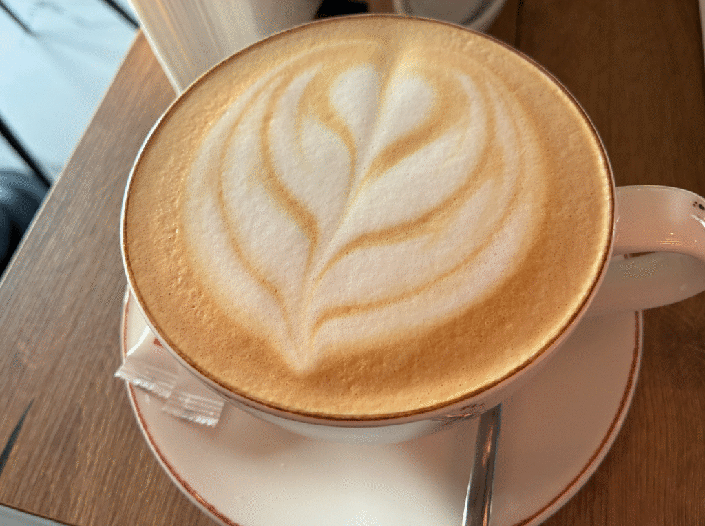 9:30運輸サービスの会社に着くも11:00発と告げられ時間調整。Coffee Line。Googleマップ☆4.5。カフェオレ大を1時間かけてのんびり飲みます。ちなみに10GELなので約580円くらい。日本と似たような価格かな。
