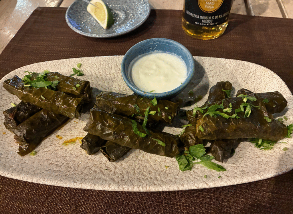 アルメニア名物中の名物 「トルマ(Tolma)」、ぶどうの葉で包んだ、東欧〜カフカスの代表料理。始めて食べましたが美味い。包まれた牛ひき肉が葉っぱのちょっと酸味&塩気とマッチしてイイ感じ。