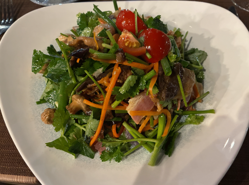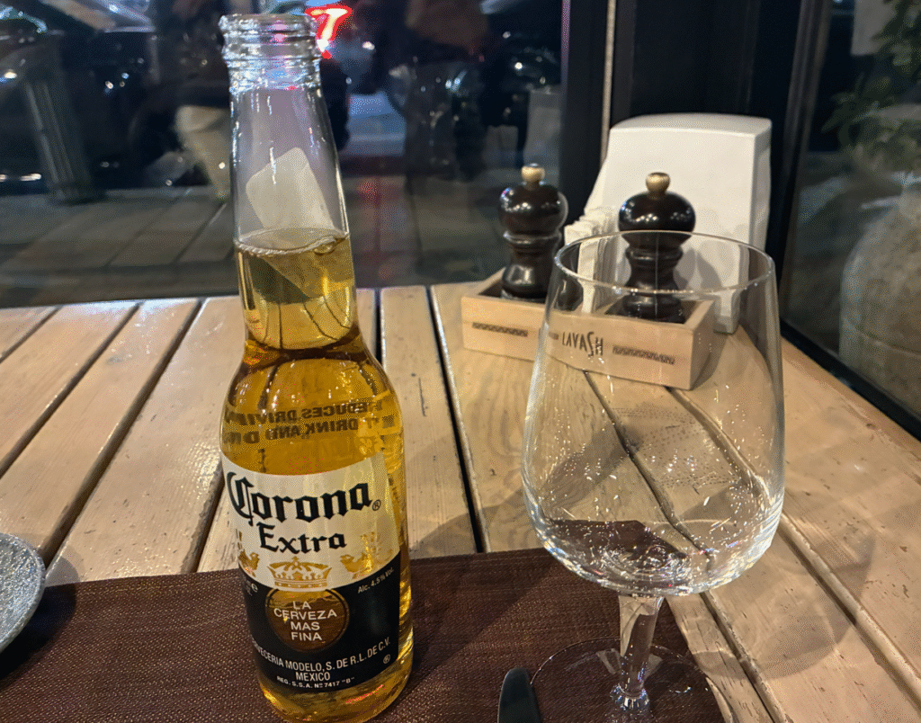 ディナーはアルメニア料理店のLavash Restaurant。コロナビール&アジアンサラダ(Asian Salad)。久しぶりのパクチー(コリアンダー)いっぱいサラダ。