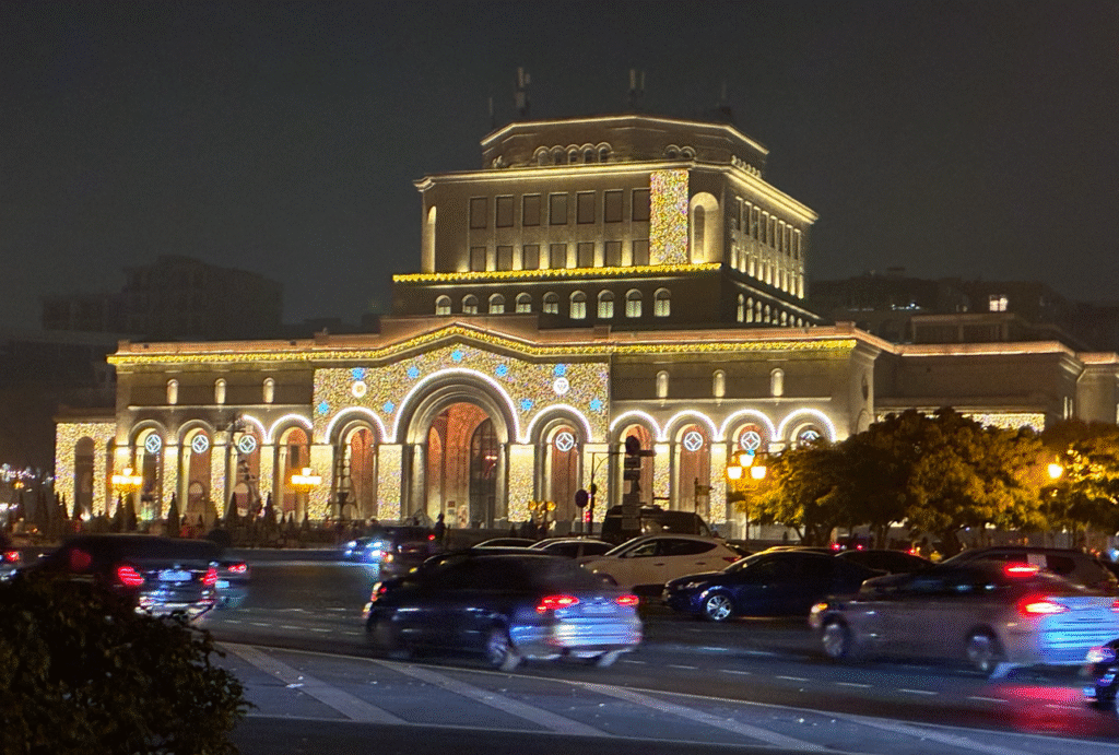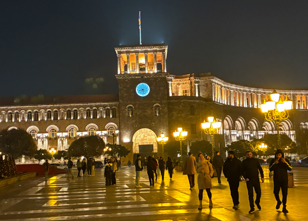 17時無事にアルメニアの首都エレバンに到着。ホテルにチェックインし休憩してから少し街歩き。エレバンの心臓部(政治・文化・交通の中心)共和国広場(Republic Square)。
