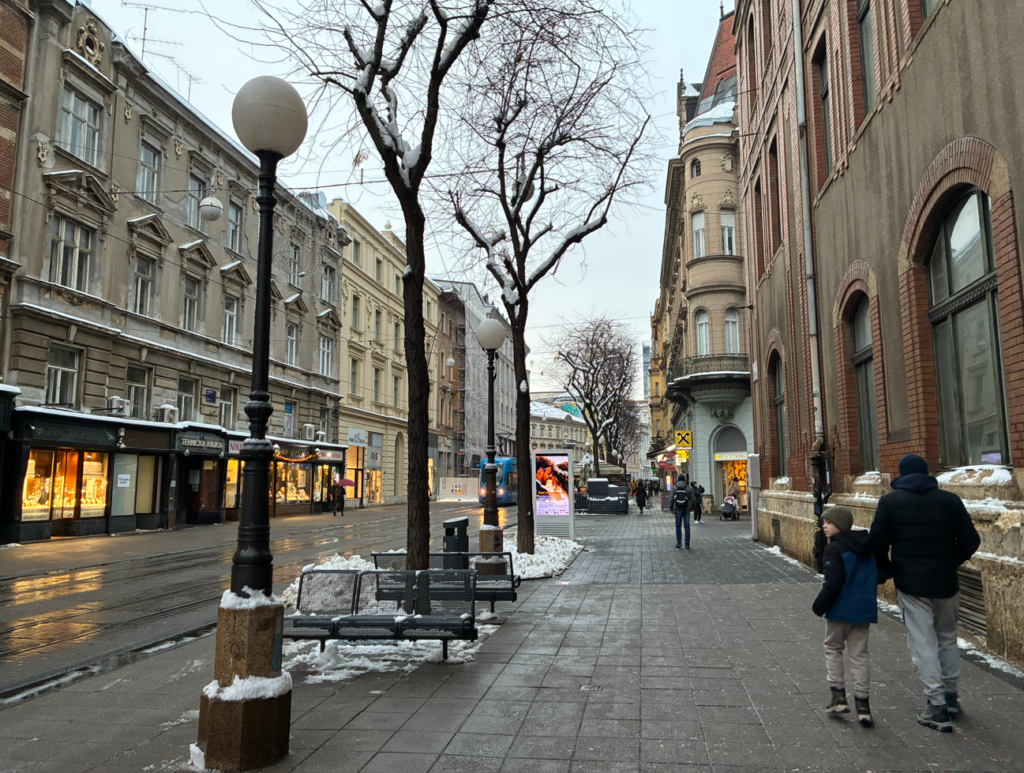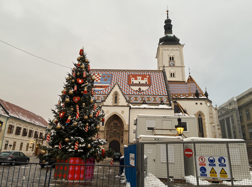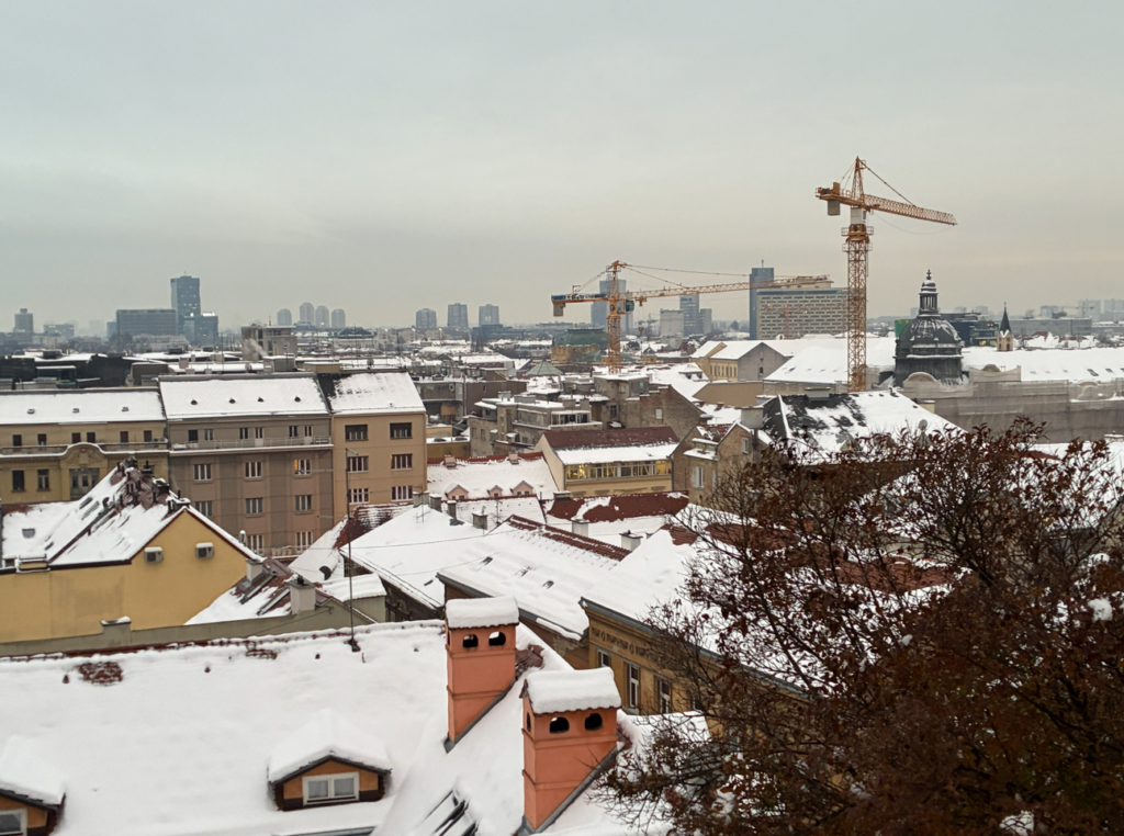 ここからはザグレブの街が一望できます。雪のない季節だと赤茶色の屋根のお家が綺麗に映えるらしいのですが、今のシーズンは雪+曇天で屋根の形と街のレイヤーが強調されててザグレブらしい「落ち着いた中欧感」がよく出てる感じです。