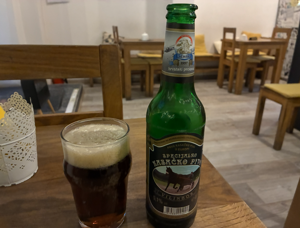 店員さんお薦めのクロアチアのローカル黒ビール。Specijalno Kisačko Pivo – “Vilinbor”。飲みやすいダークラガー寄りな感じで食事ともマッチ。