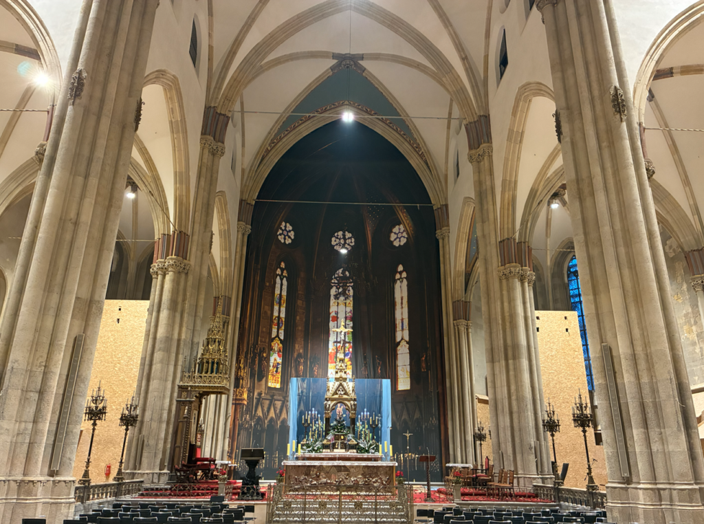 内部見学も可能っぽい(誰もいなかったし、止められなかったので多分OK)。天井が高いので上を見上げると圧巻。ゴシック建築らしい垂直性と厳粛な空気が雰囲気あります。
